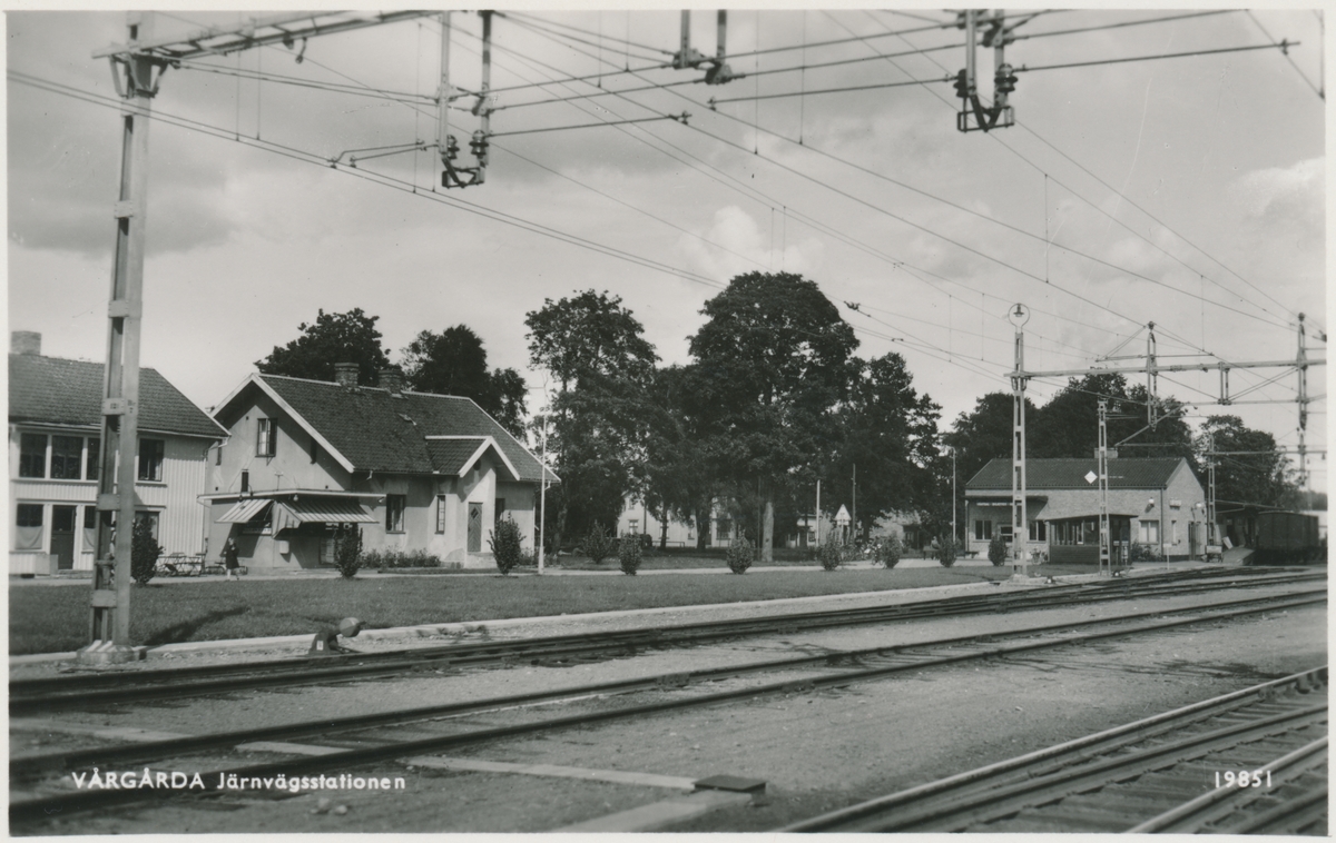 Vårgårda station. Statens Järnvägar, SJ. Banan öppnades 1857, elektrifiering 1926 och fick dubbelspår 1954.
