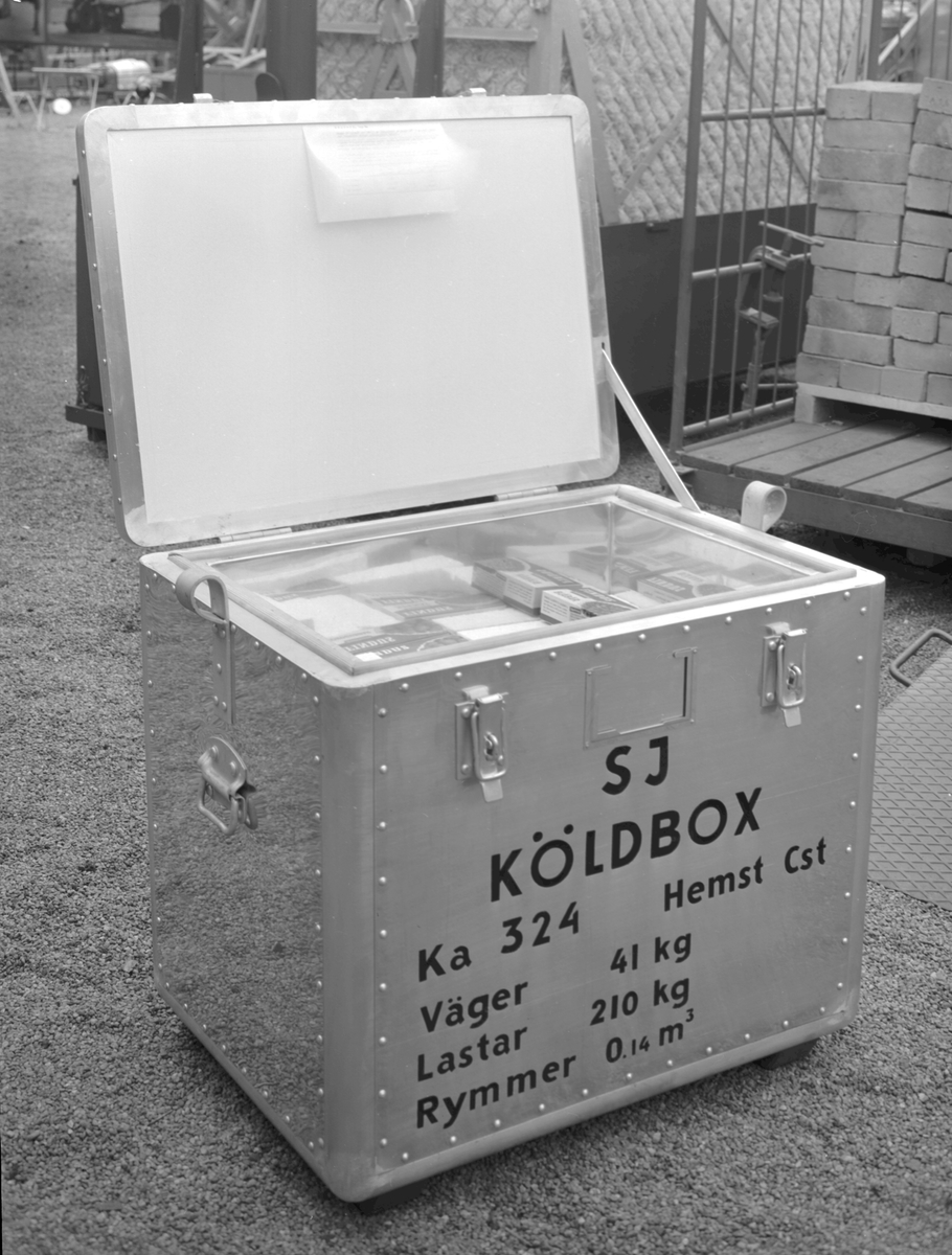 S:t Eriksmässan 1954. Låda med texten SJ Köldbox