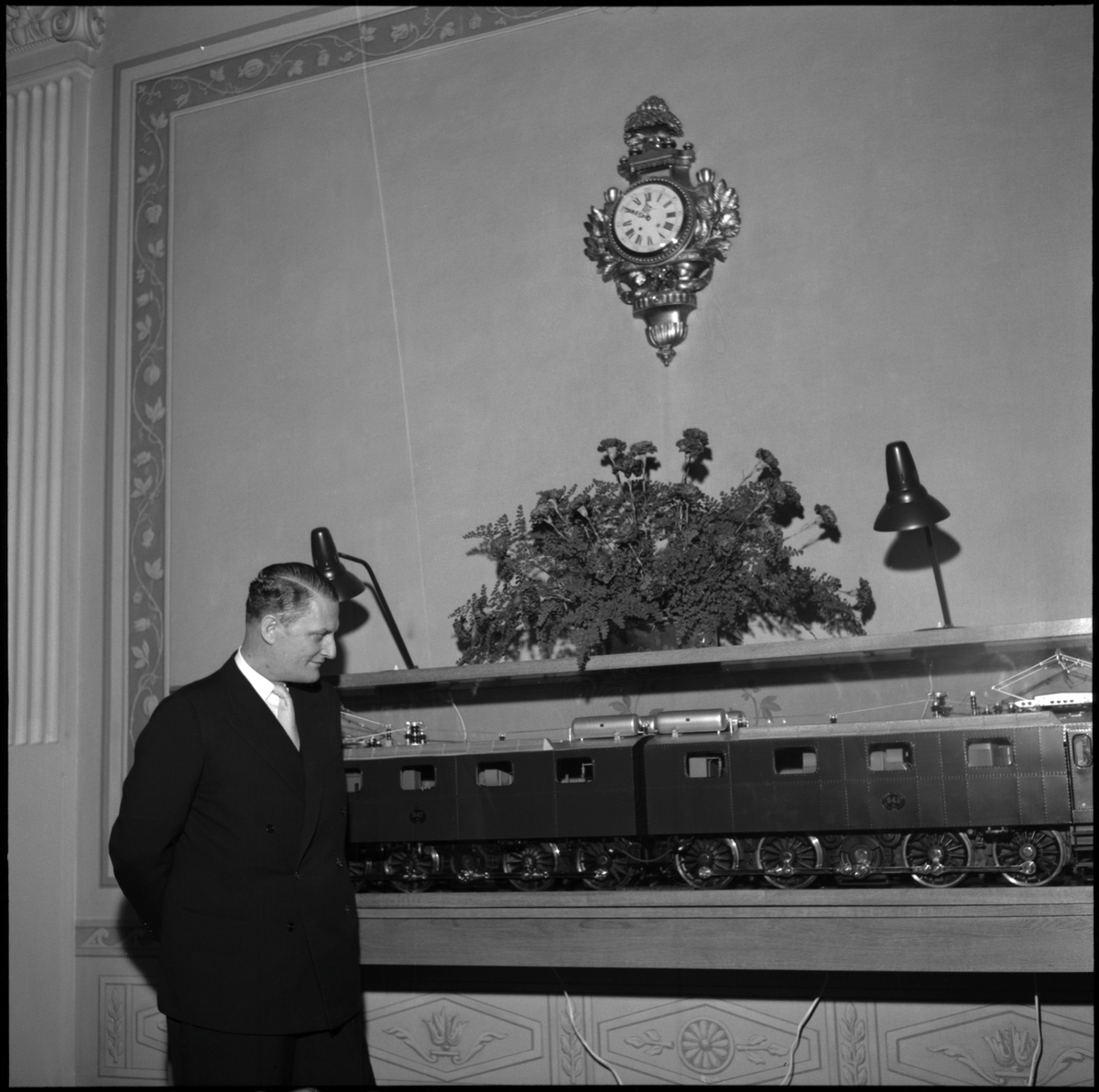 Generaldirektör Erik Upmark tar emot gåvor från Kalmar Verkstad och Motala Verkstad, AB.