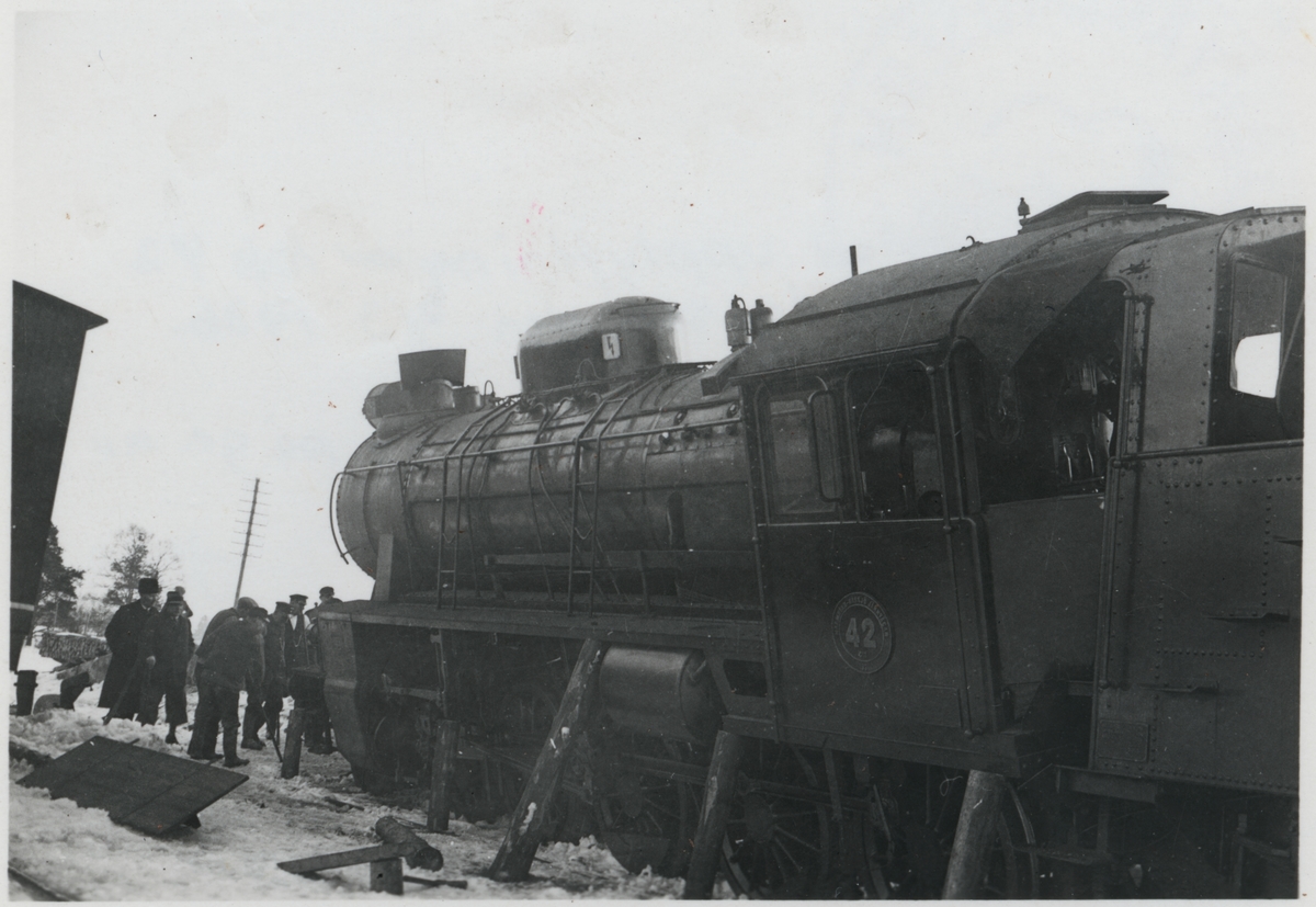 Urspåring av HNJ lok 42 (tåg 62) i Forsheda den 2/3-1936