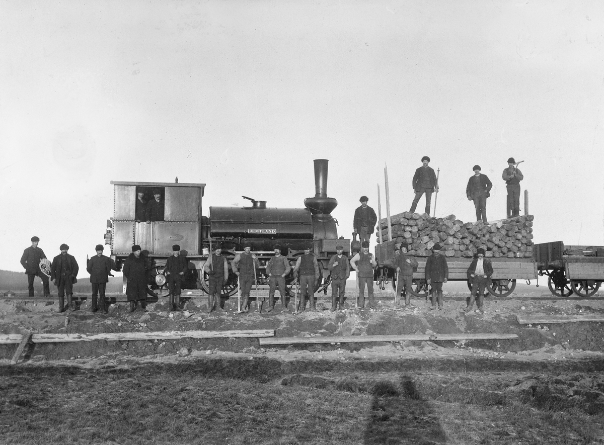 Statens Järnvägar, SJ lok 21 "JEMTLAND " vid anläggningen av Norra Stambanan.
