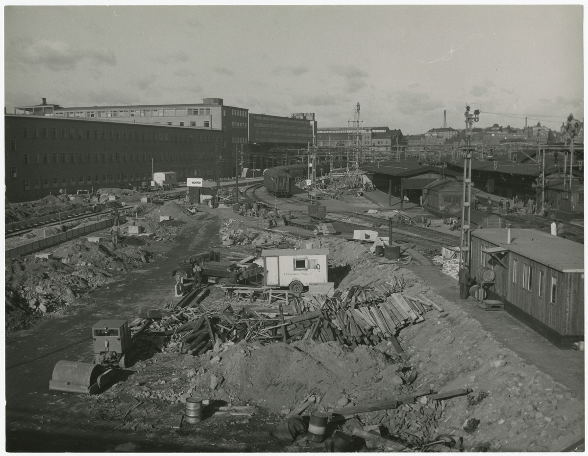 Statens Järnvägar, SJ, Stockholm centralstationen ombyggnad av bangården 1954.