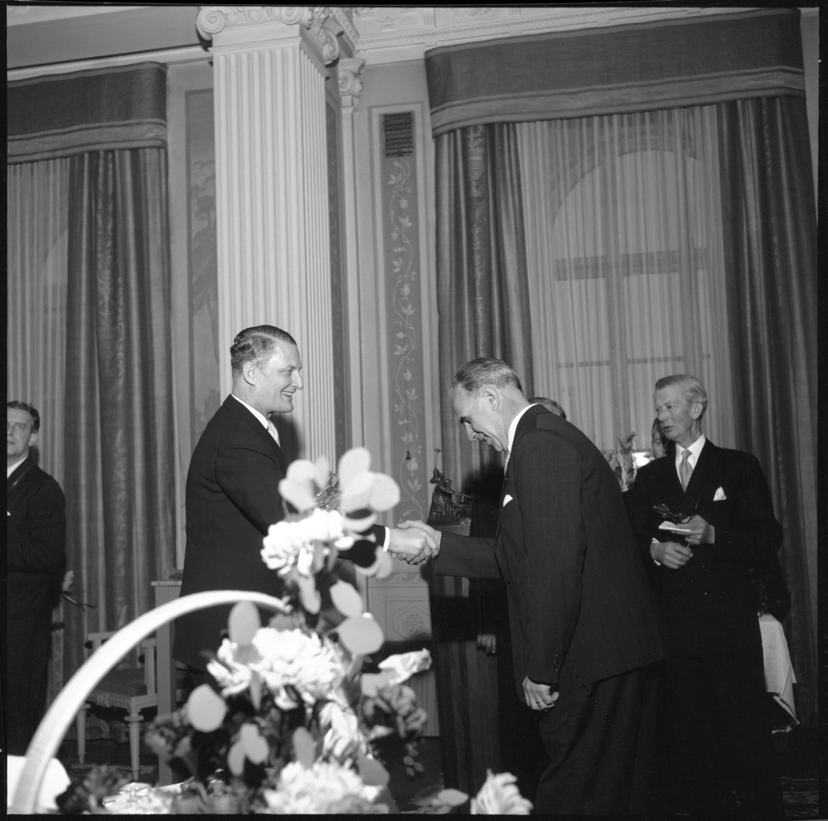 Generaldirektör Erik Upmark tar emot gåvor från TTF, STF, Kalmar Verkstad Motala Verkstad, AB.