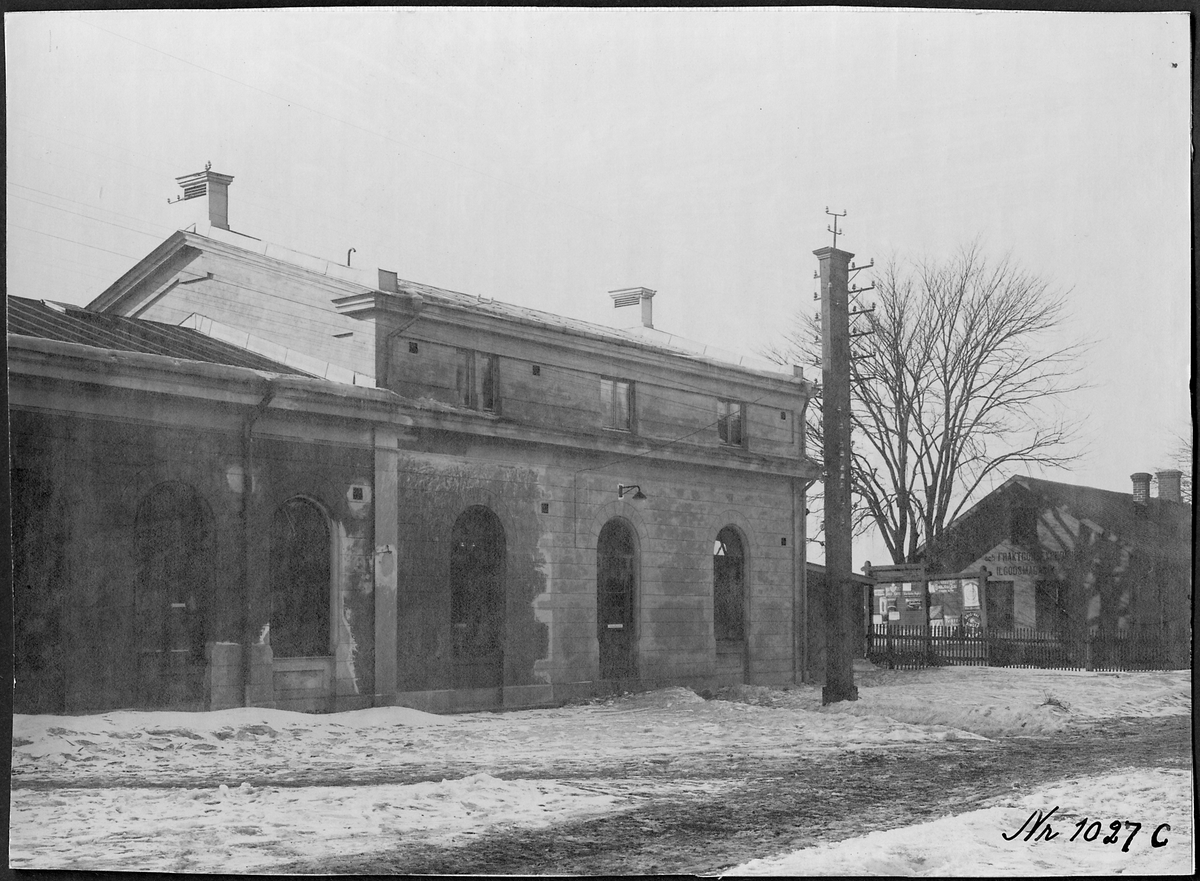 Titel: Nässjö station. Tillbyggnad av stationshuset sedd från gatan.