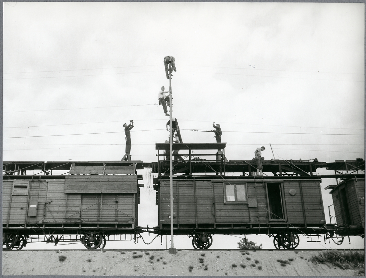Montering av kontaktledning. Statens Järnvägar, SJ Efd 795.