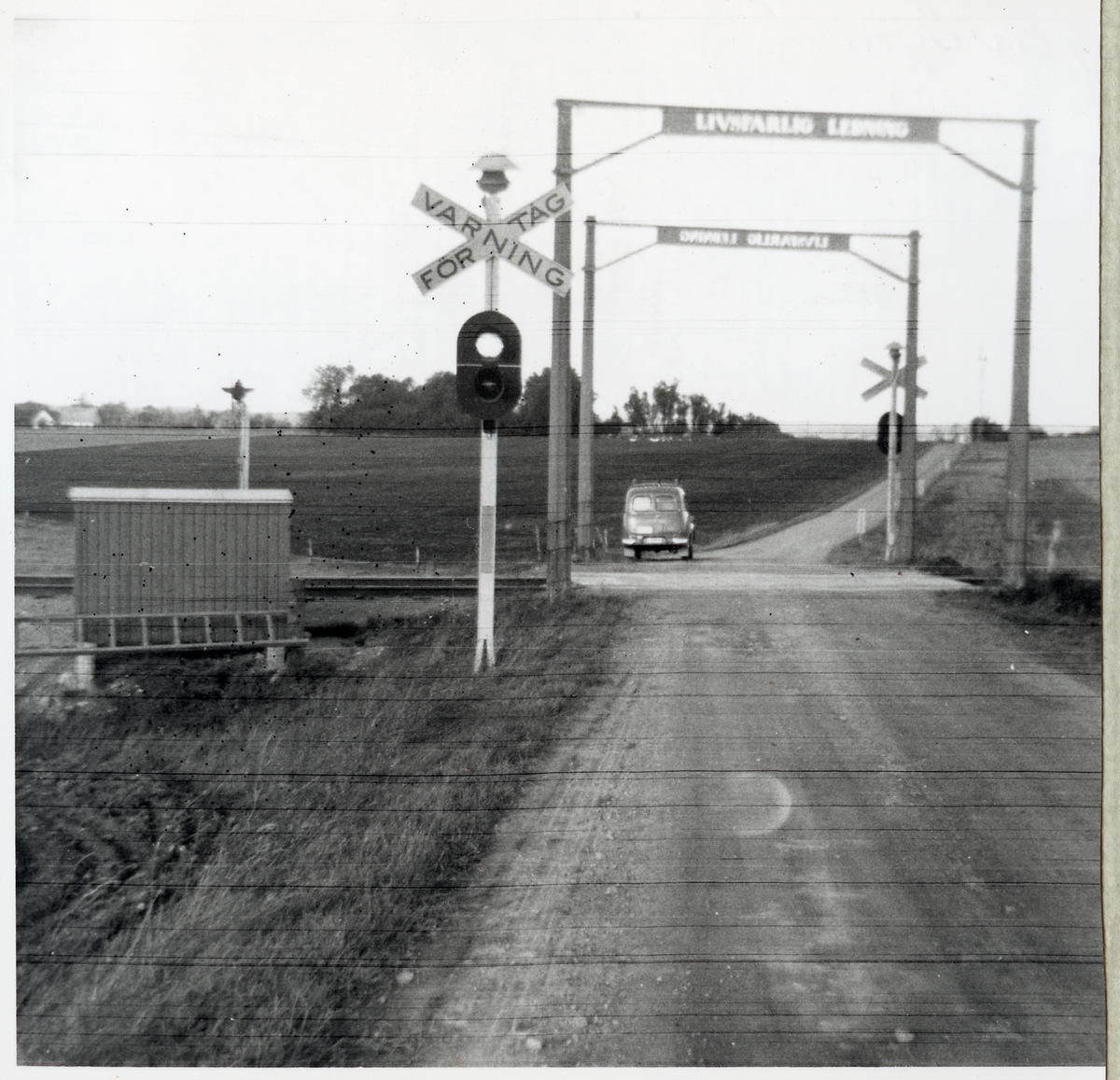Titel: Järnvägsövergång vid Årnabergavägen på linjen mellan Veinge och Knäred.