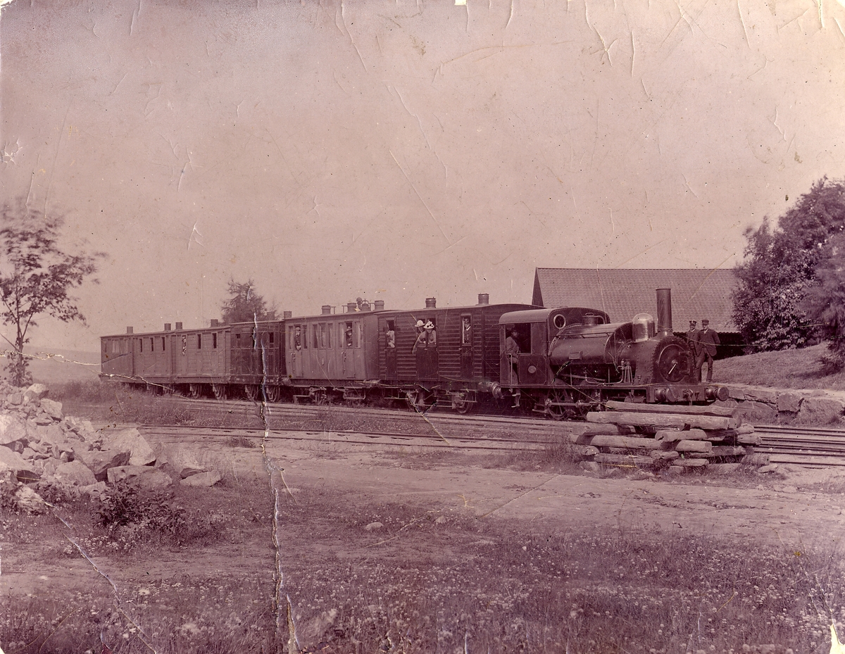Titel: SWB:s lok "Barken" med tågsätt vid Ludvika station 1892