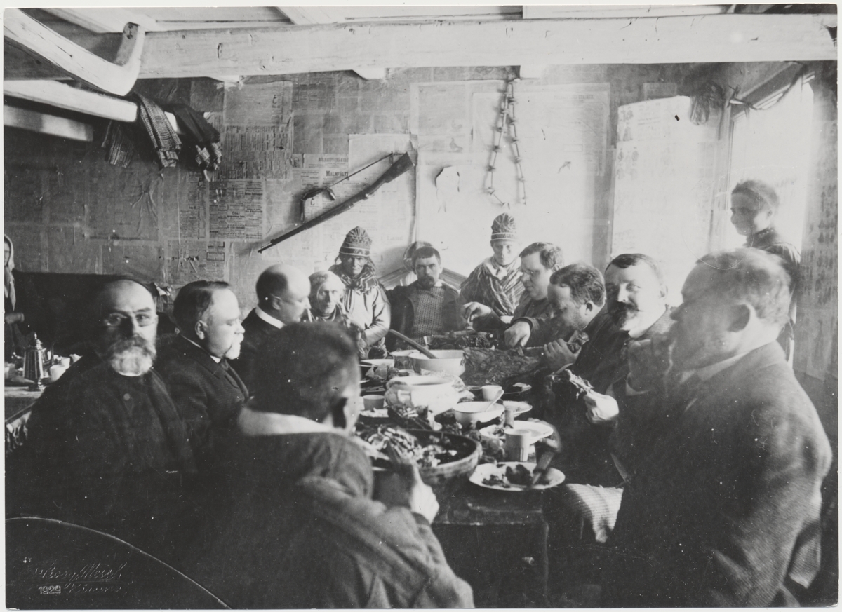 Samemöte på Spetsgård i Jukkasjärvi 1901. Där bland annat Landsekreterare Piper, Albert Engström, Landshövding C.J Bergström och Direktör Hjalmar Lundbom deltar.