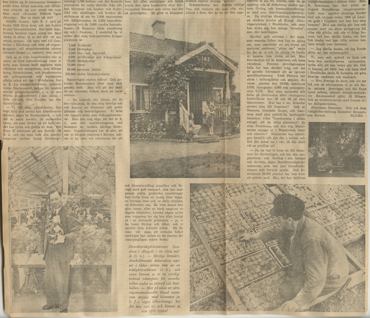 Tidningsklipp ur "Uppsatser om trädgårdar m.m. som på ett eller annat sätt beröra Gösta Reuterswärd 1931-1943".