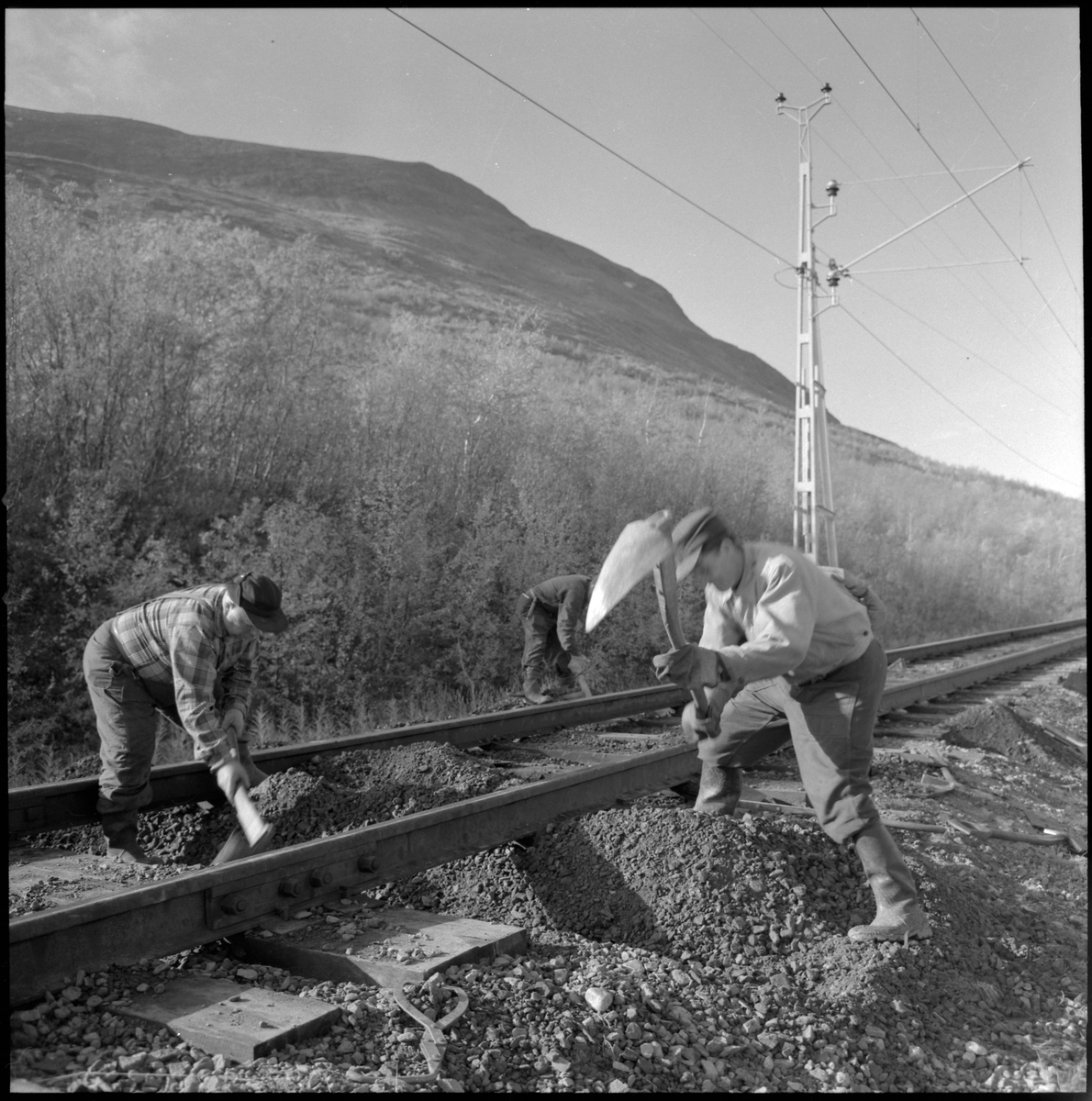 Byta av slipers. Upprustning av malmbanan Kiruna-Riksgränsen.