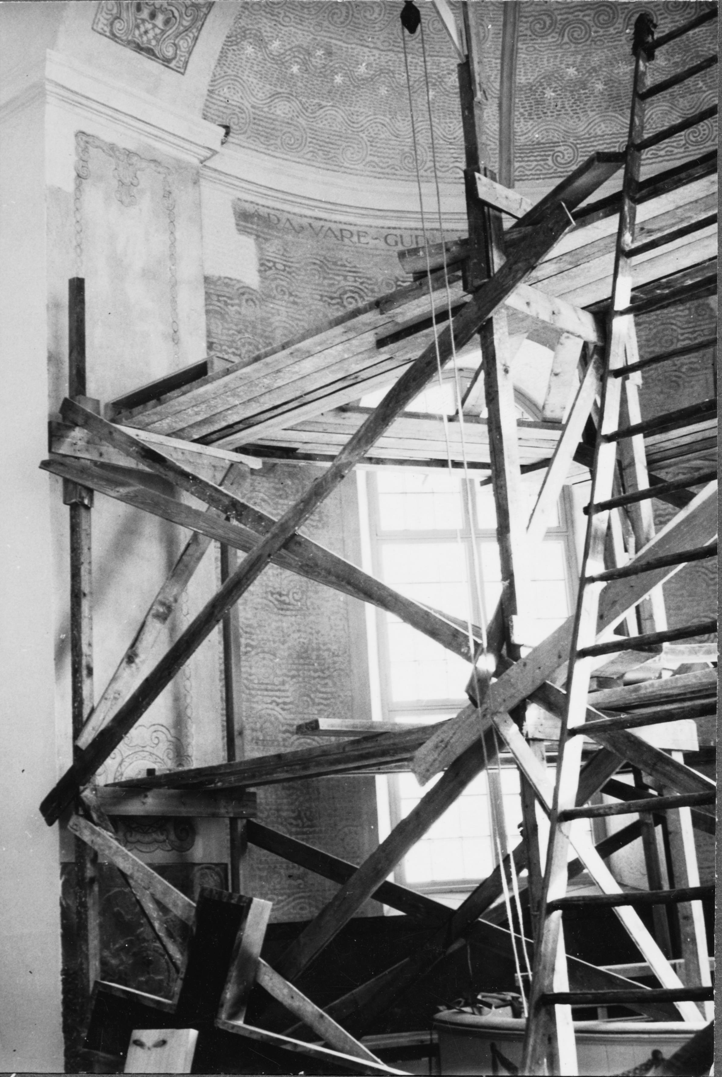 Dekorativ utsmyckning i koret, delvis rengjord.