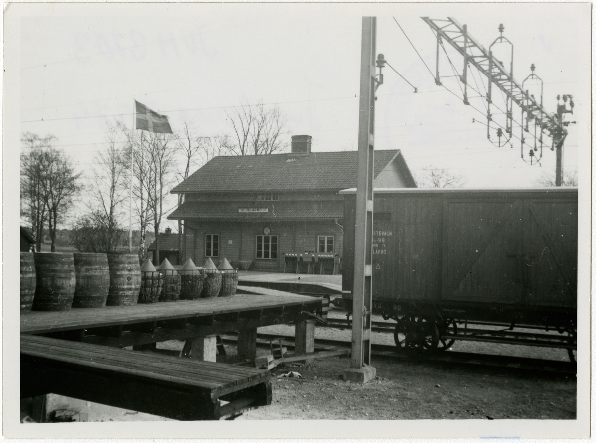 Statens Järnvägar, SJ Fraktstyckegods på lastbryggan och "Pite-Britta" bangårdsvagnen fullastad med möbler.