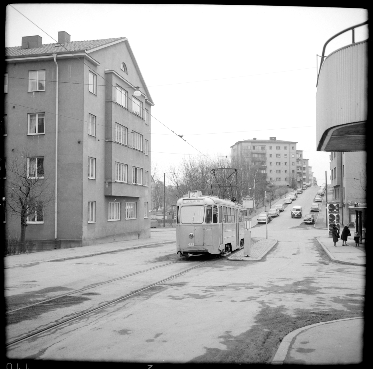 Aktiebolaget Stockholms Spårvägar, SS A25 433 "mustang" linje 2 Fredhäll - Karlaplan vid ändhållsplatsen Fredhäll.