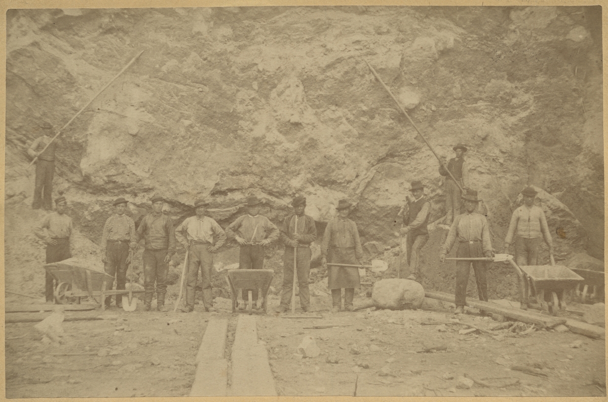 Banbyggnad av Statsbanan Sundsvall - Torpshammar som byggdes om från smalspårig (1067 mm) till normalspårig (1435mm), när Statens Järnvägar (SJ) köpte upp järnvägen av Sundsvall - Torpshammars Järnväg (STJ) Mellan år 1884 - 1886.