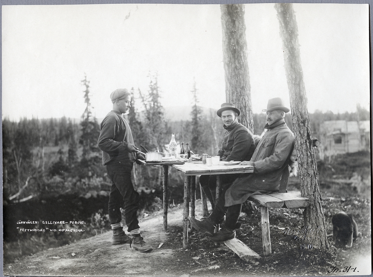 2 män som inväntar middagen vid Hippasrova. Järnvägen mellan Gällivare-Porjus.