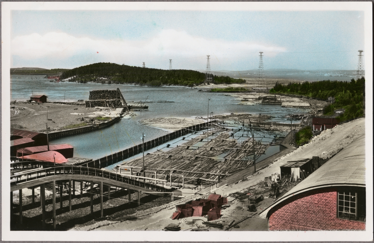 Sågverket i Munksund i utkanten av den yttre fjärden mot Piteå sett från bottenhavet, längre fram i bild ligger Fingermanholmen där man når den inre fjärden och till slut Piteå via antingen Munksundet till vänster om holmen eller Djupsundet till höger.