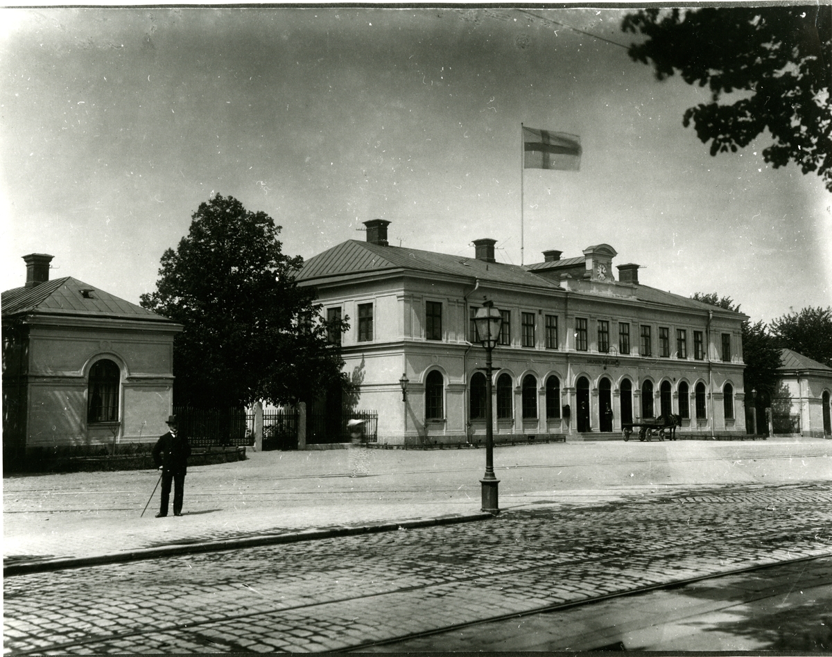 Karlskrona station från gatusidan. Karlskrona - Växjö Järnväg öppnades för allmän trafik 1874. Samma år färdigbyggdes stationshus i två våningar. Bangården utformades så att denna hade plats för fem spår. Moderniseringen av stationen skedde år 1946. Stationen hette Karlskrona Central under perioden 1.9.1954 - 1.9.1957.