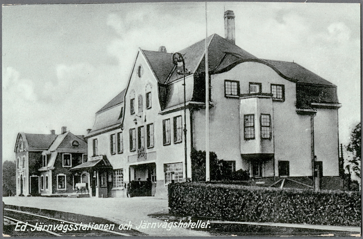 Pingstaftonens förmiddag 1910 brann stationen ned till grunden tillsammans med Hotell Drott, Lilla Hotellet och Järnvägshotellet. Stationsbyggnaden var från sitt ursprungliga skick påbyggd med en våning, samt en farstu norrut. 1912 stod det nya stationshuset färdigt. Intill dess användes en reservstation i en fastighet som tillhörde DJ och som låg vid spårområdet på södra sidan.