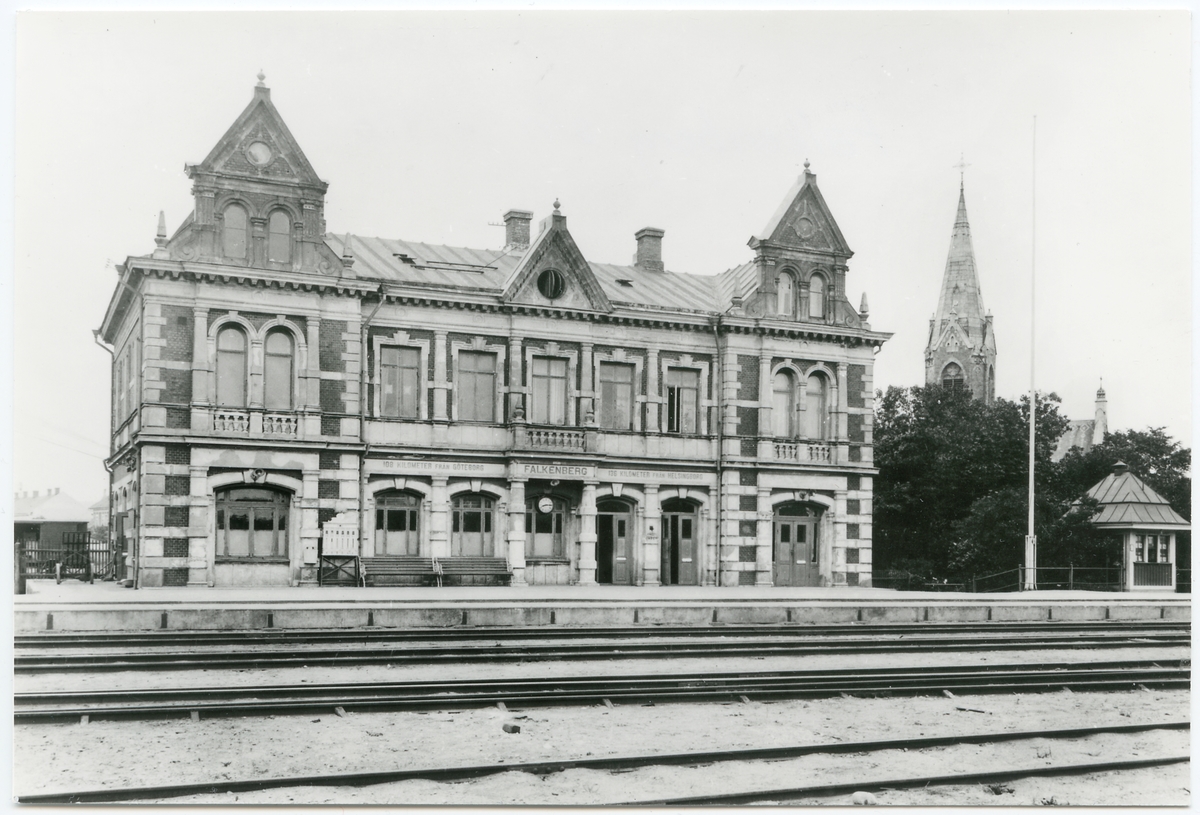 Falkenbergs gamla järnvägsstation uppfördes i samband, när de byggde Mellersta Hallands Järnväg, och det invigdes 1886. 10 år efter så blev privatbanan förstatligad och blev en del av Västkustbanan. 2008 så stängdes den gamla stationen. 12 juni 2008, så invigdes den nya stationen och trafikstarten kom igång den 15 juni samma år.