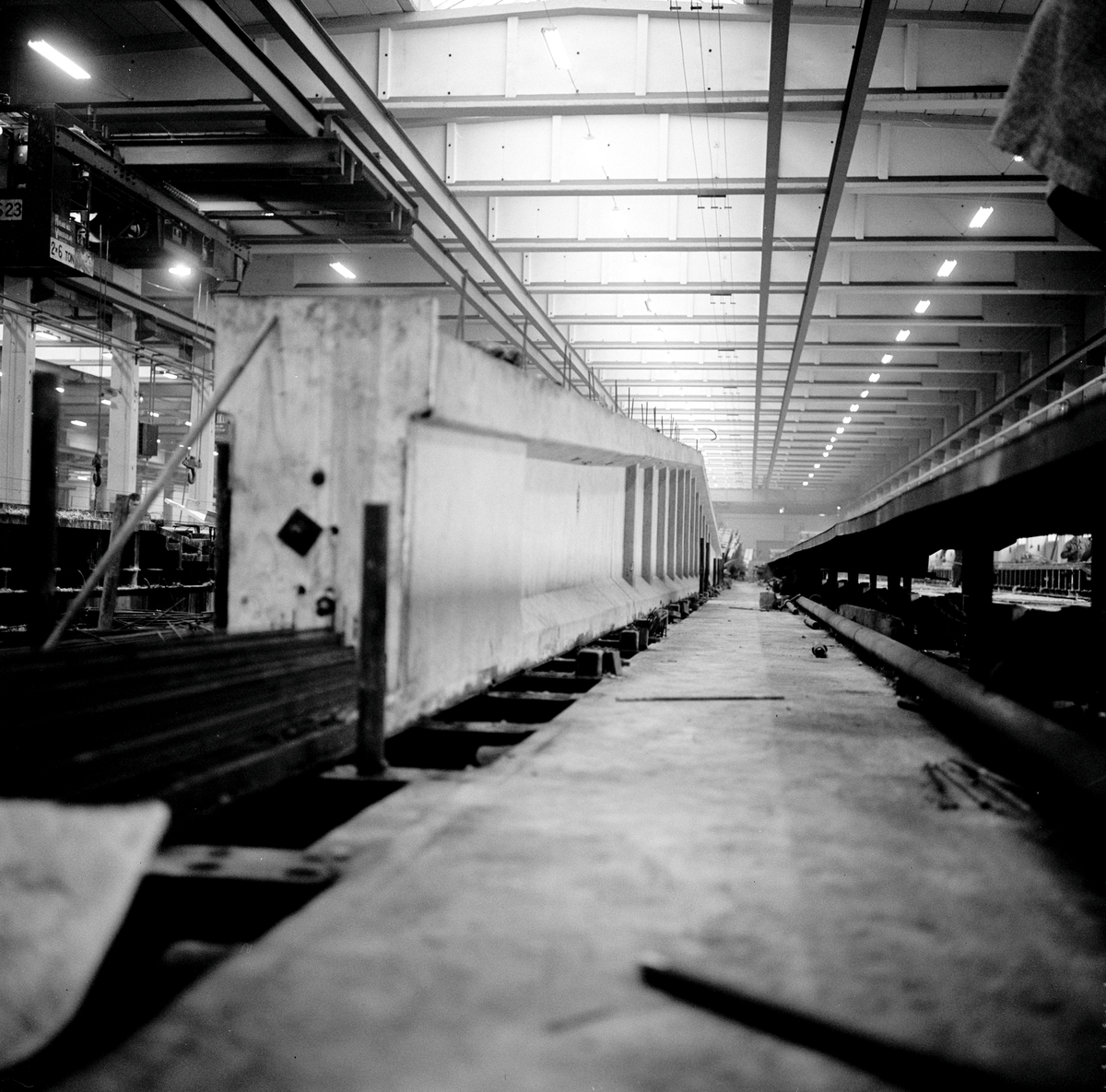 Strängbetong i Veddige. Tillverkning av betongbalkar