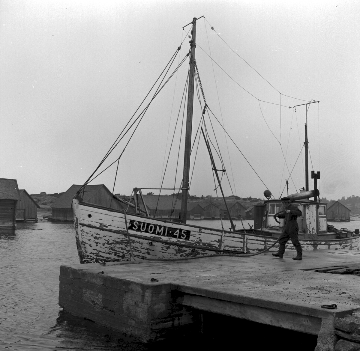 Ålandsresa. Fiskeläger och fiskebåt, Suomi 45