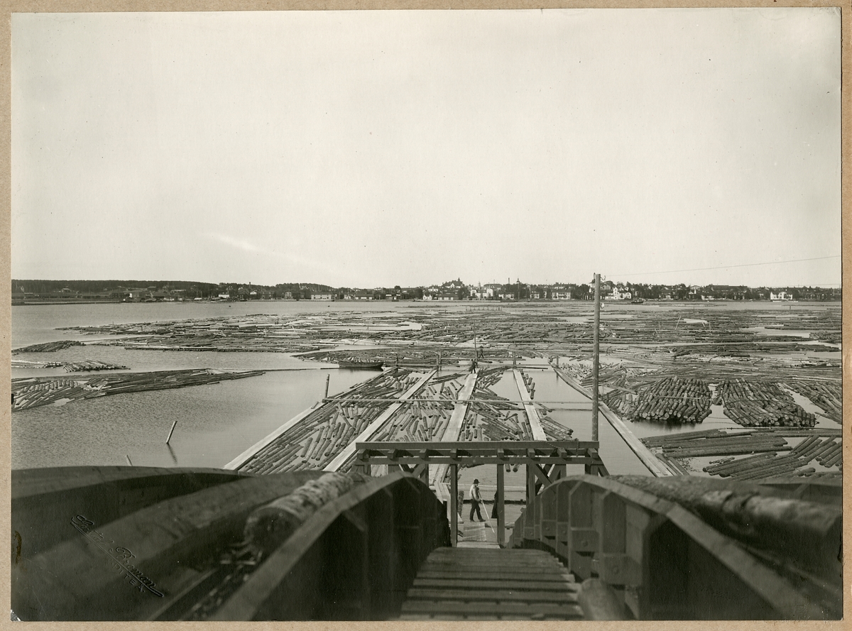 Timmermagasinet sett från såghuset, Statens Järnvägars slipersfabrik i Piteå.