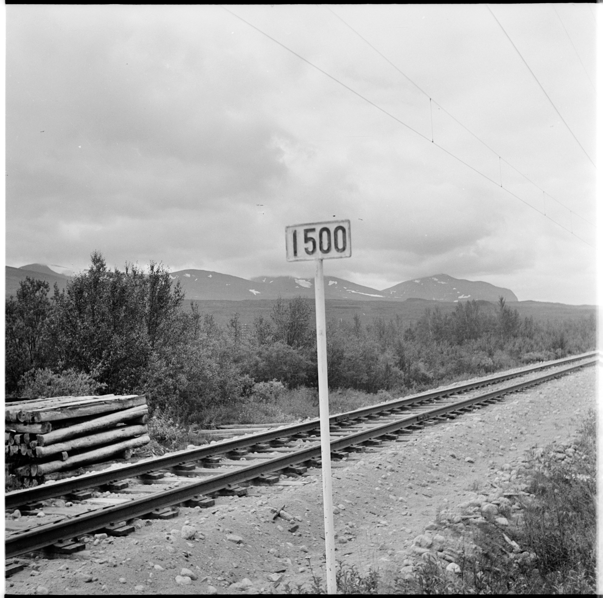 Kilometertavla 1500 mellan Stordalen och Abisko. Kilometertavlan anger i det här fallet avståndet från Stockholm.