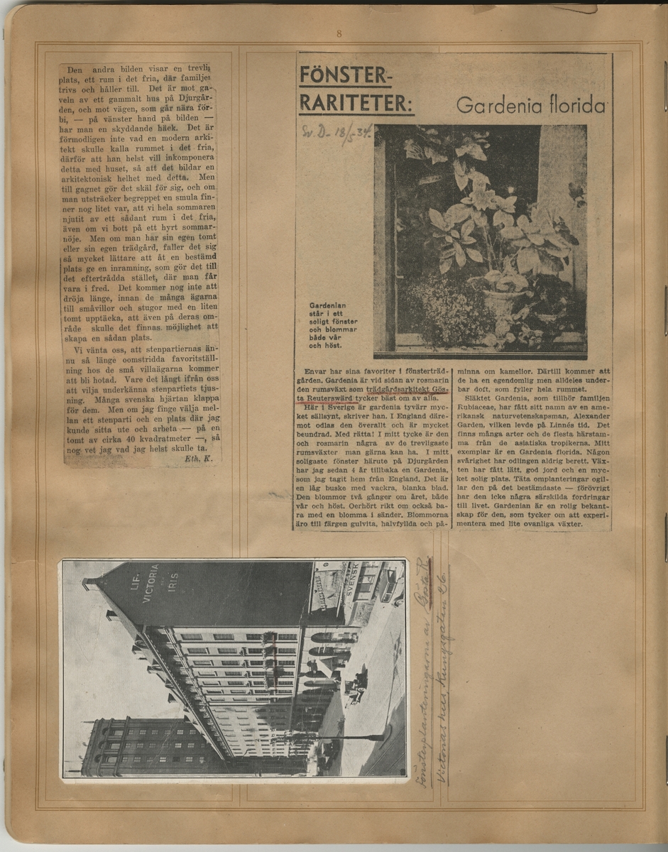 Tidningsklipp ur "Uppsatser om trädgårdar m.m. som på ett eller annat sätt beröra Gösta Reuterswärd 1931-1943".