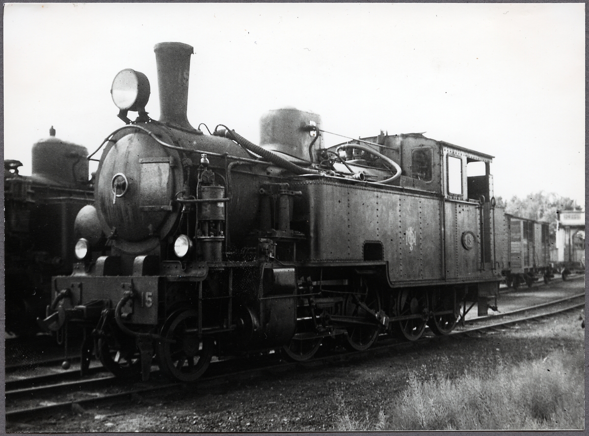 Ånglok, Norra Östergötlands Järnvägar, NÖJ lok 15. Loket är tillverkat av Nohab 1917 för spårvidd 891mm. 1950 efter förstatligandet fick loket nytt nummer Statens Järnvägar, SJ N6p 3162, skrotades 1970.
