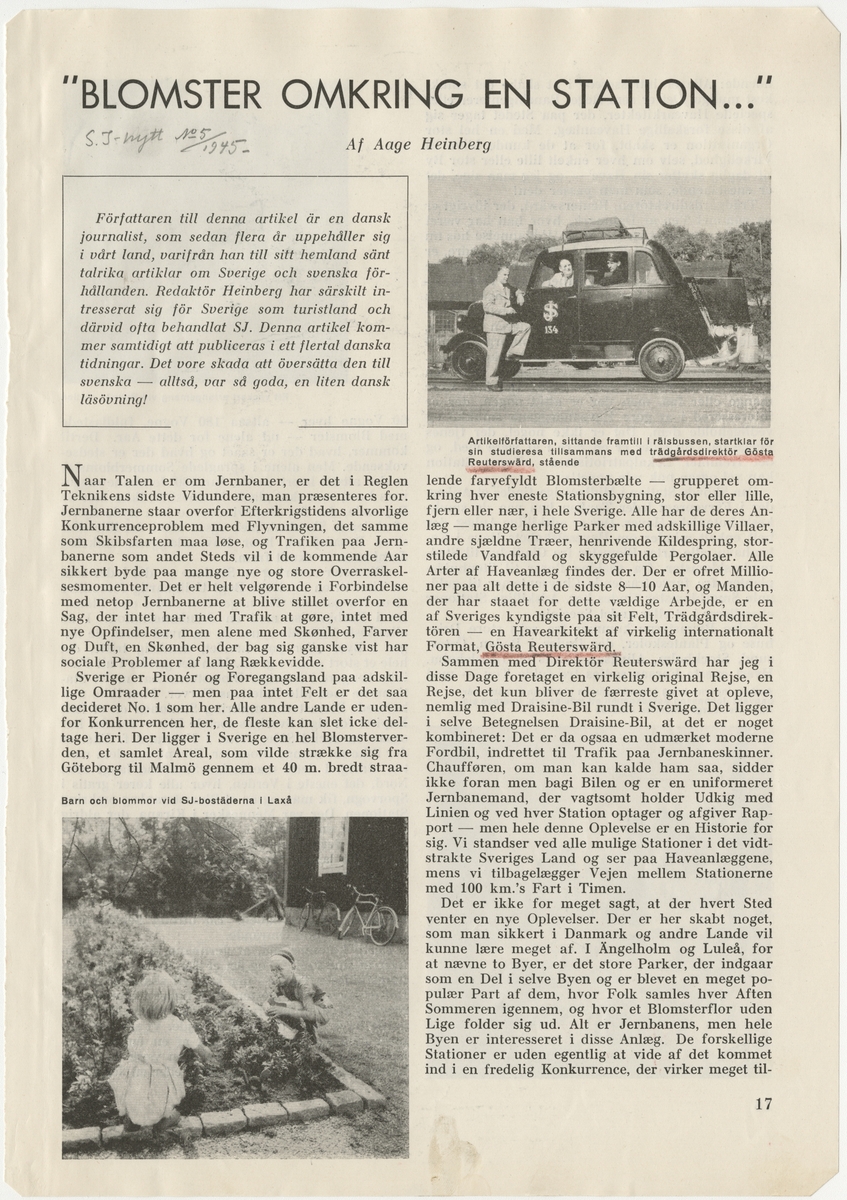 SJ-Nytt, Nr. 5, 1945: Blomster omkring en station...