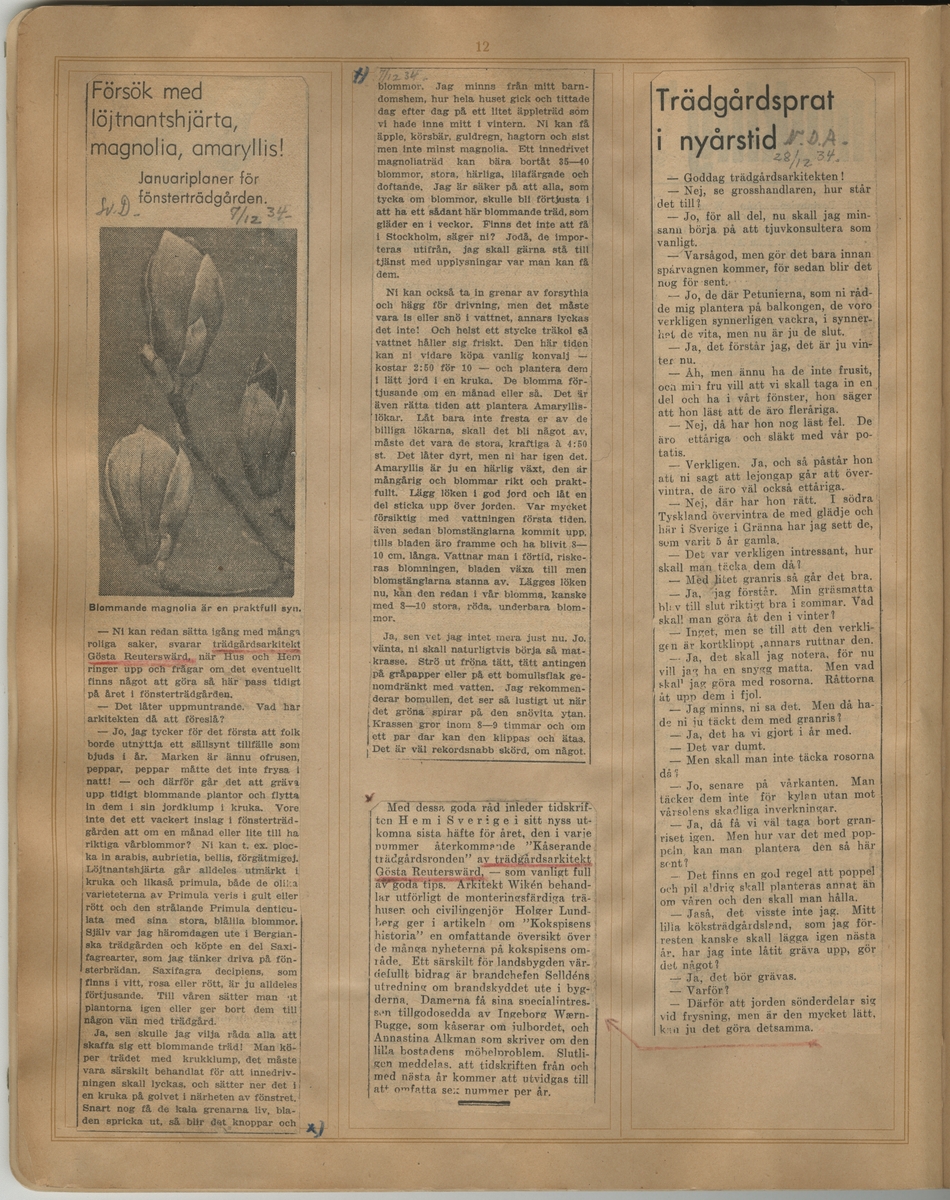 Nya Dagligt Allehanda, 28-12-1934: Trädgårdsprat i nyårstid.