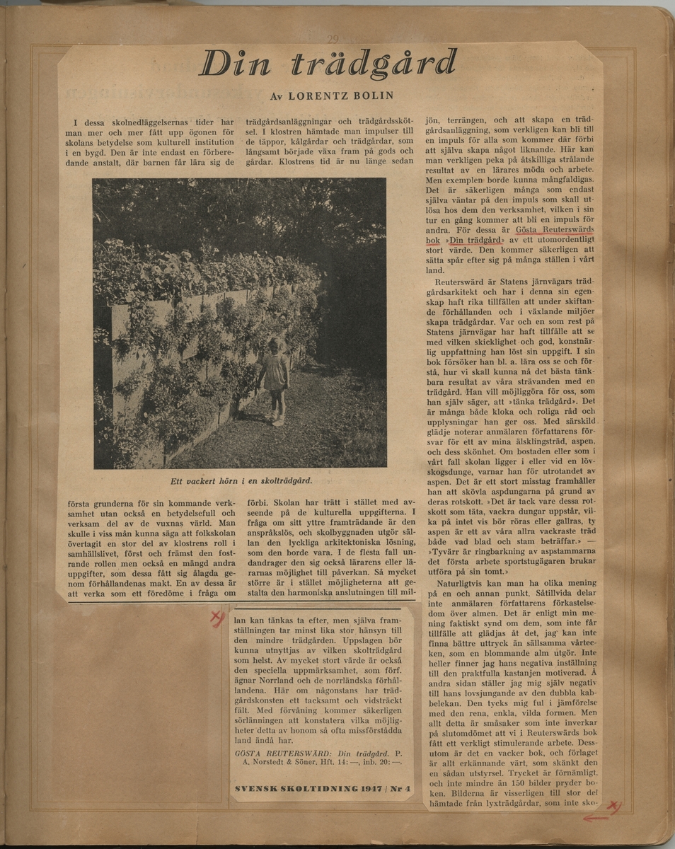 Svensk Skoltidning, Nr. 4, 1947: Din trädgård.