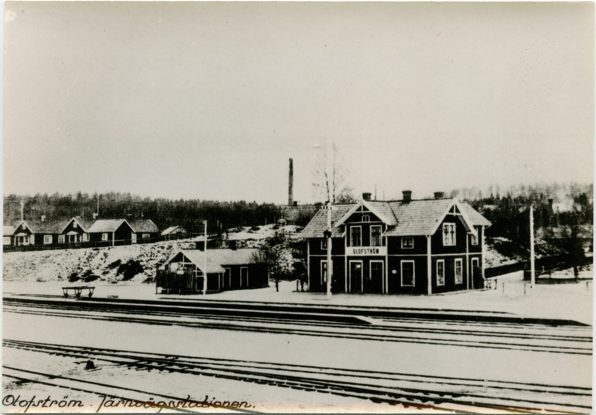 Sölvesborg - Olofström - Älmhults Järnväg öppnades 1901 för allmän trafik. Samma år anlades station. Då byggdes en- och enhalvvånings stationshus i trä. Järnvägen förstatligades 1942. I slutet av 1950-talet ersattes stationshuset med en nybyggnad öster om banan. Stationen och hela bangården är anpassade efter industriomgivningen bland annat Svenska stålpressnings, plåtpressverk, emaljeringsverk, träullfabrik, såg, kvarn och kraftverk. Persontrafiken lades ned 1984 och bandelen Sölvesborg - Olofström revs upp. Idag trafikeras bandelen Olofström - Älmhult med godståg från Volvo till Göteborg och gent samt tåg med skrot från Volvo av Stena Metall.