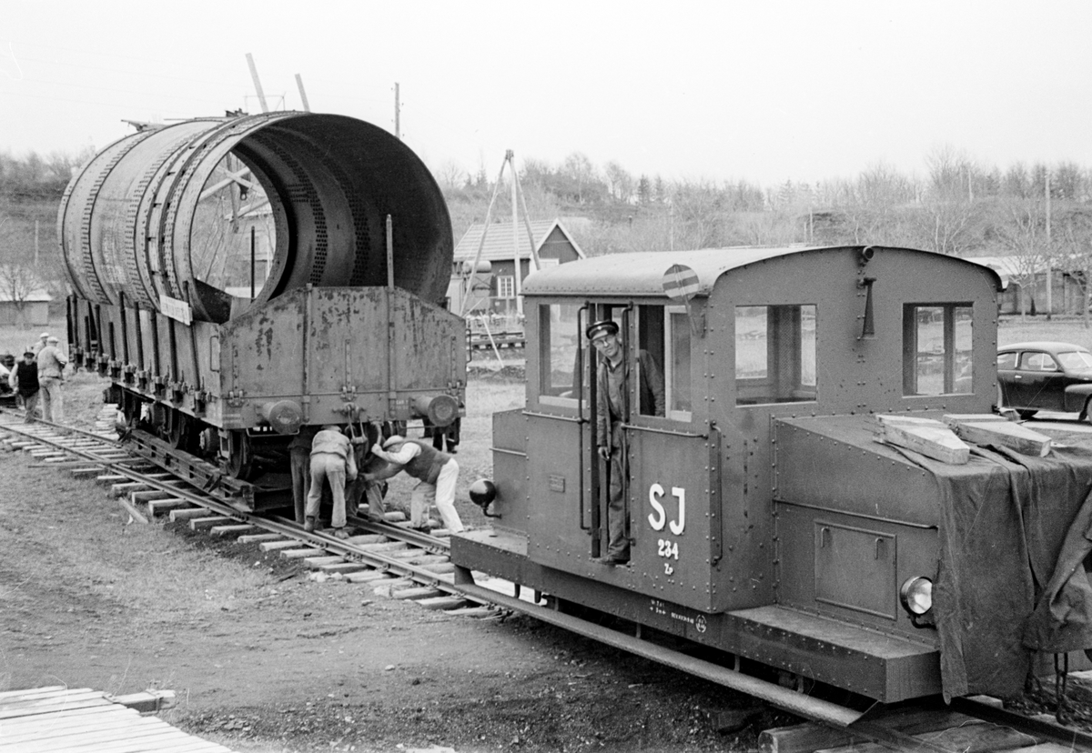 Statens Järnvägar, SJ Zp 234. Transport av cementugn Kalmar - Degerhamn. Fotograferat av Stationsskrivare Nelson, Kalmar Central