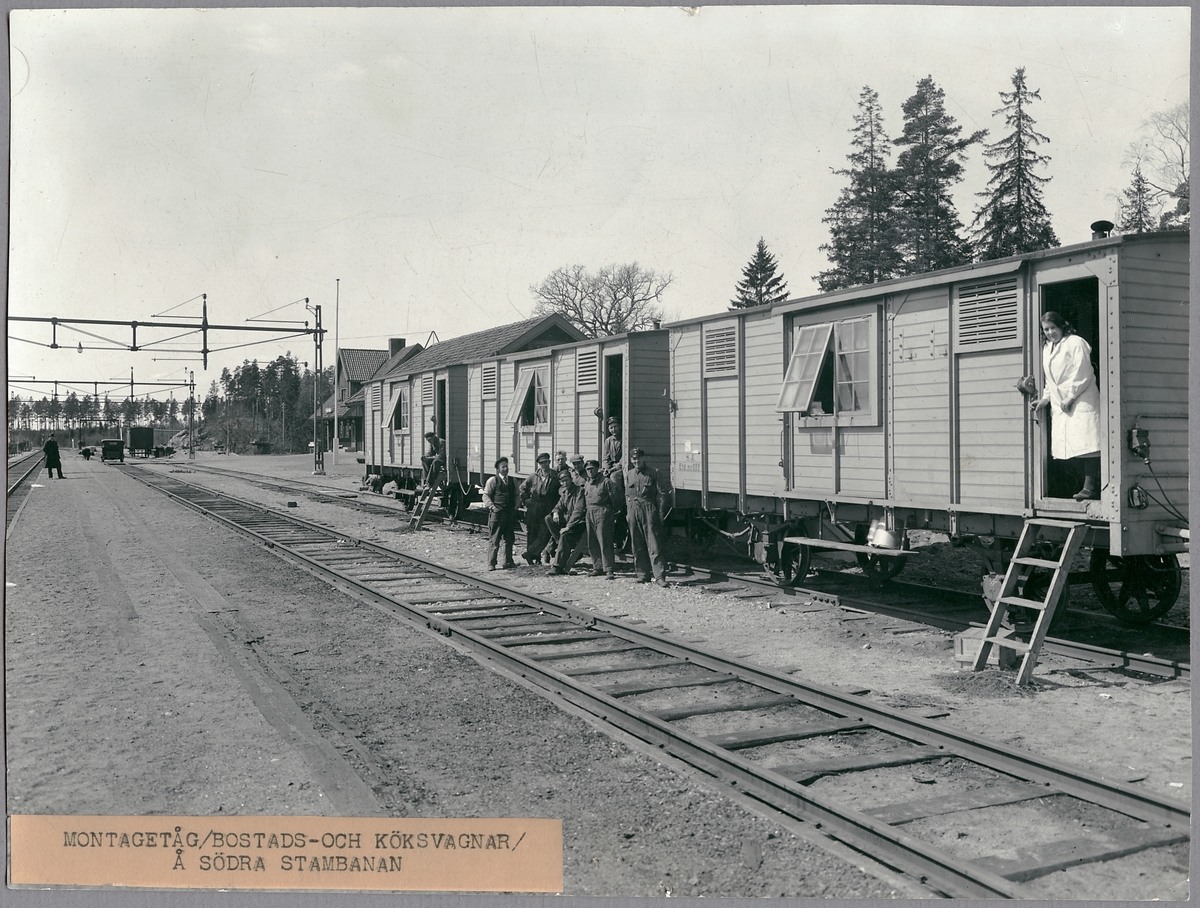 Arbete mellan Järna - Norrköping, bostadsvagn och kokvagn. Kokvagn Statens Järnvägar, SJ Efd. nr 222.