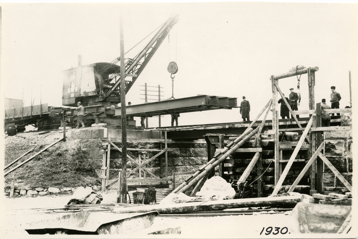 Titel: Vägport vid Pommern. Montering av nya bron.