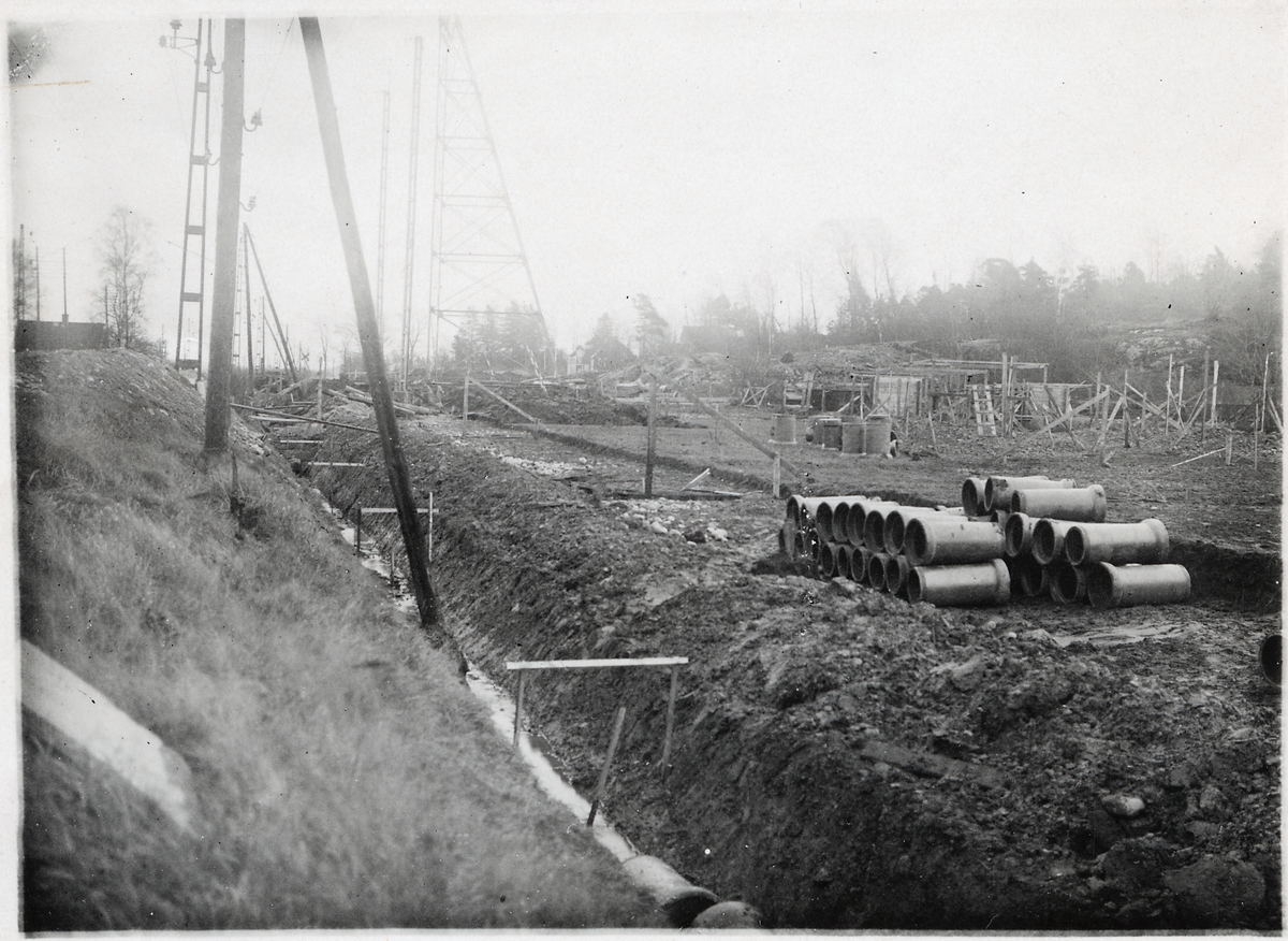 Titel: Läggning av avloppsledning vid nya vägen i Alingsås.