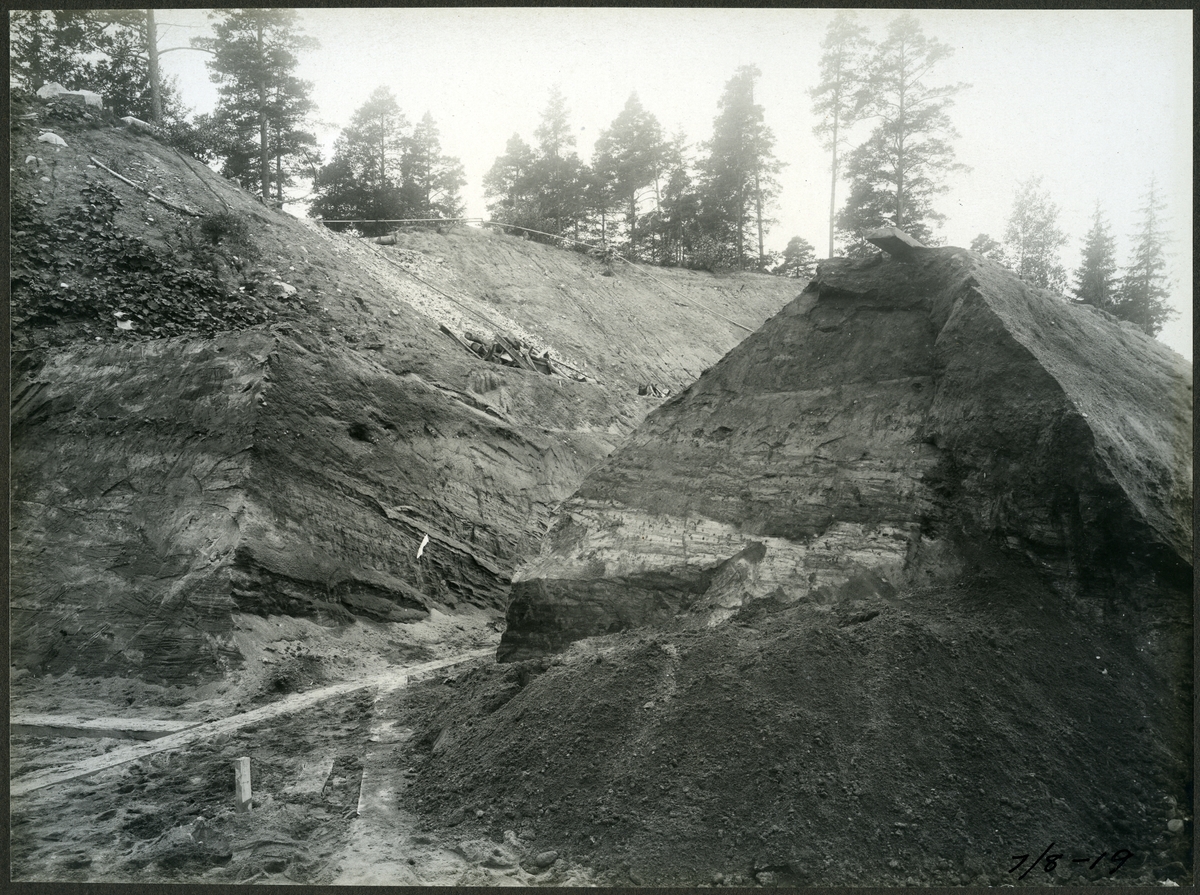 Titel: Markarbete vid brobygget för dubbelspåret över kanalen mellan Rönninge - Ström.