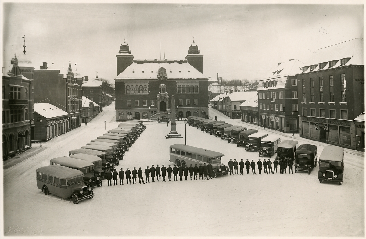 Busspark med personal. Varberg-Borås-Herrljunga Järnväg, VBHJ.