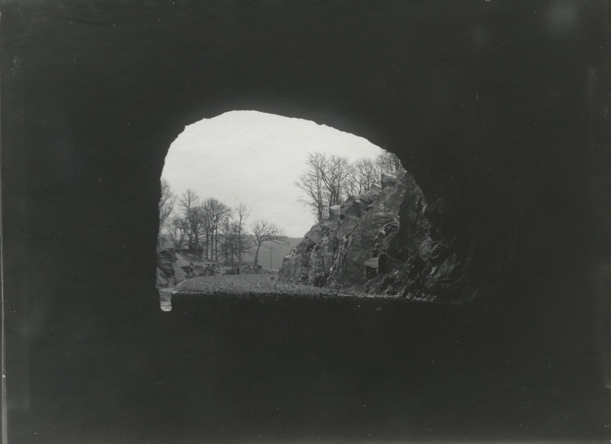 Dubbelspårsbanbyggnad Göteborg - Alingsås. Tunneln vid sjön Aspen på bandelen Jonsered- Lerum, år 1911 - 1912