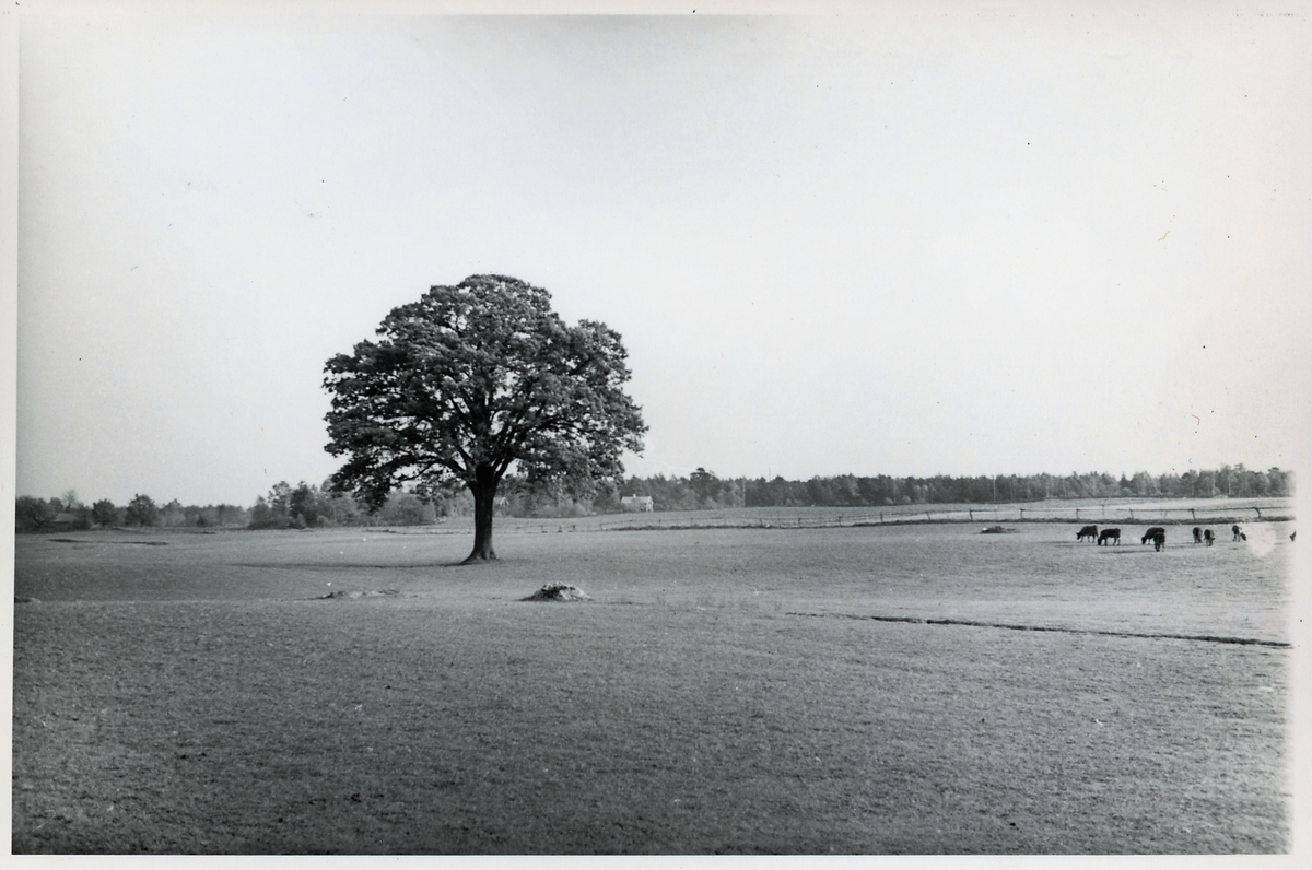 Titel: Äng med ek och betesdjur längs sträckan mellan Trekanten och Smedby.