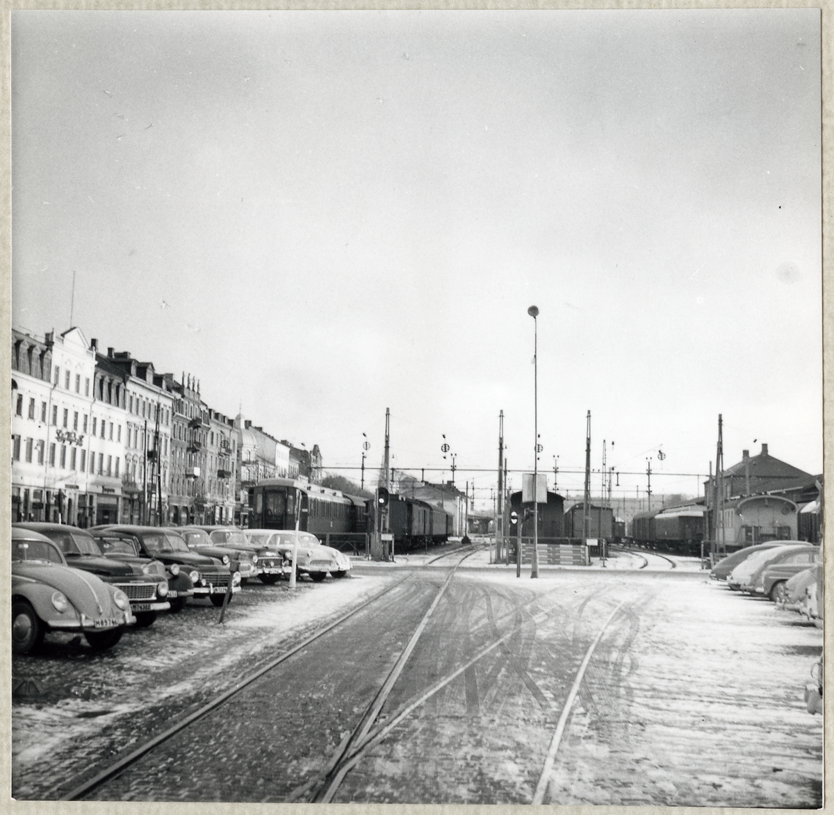 Titel: Järnvägsövergång vid Lilla Hamngatan I Helsingborg på linjen mellan färjestationen och centralstationen.