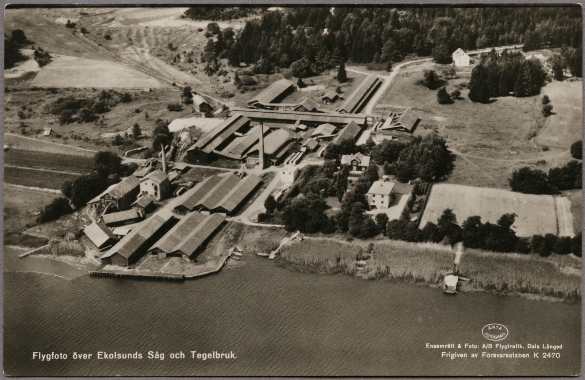 Vy över Ekolsunds sågverk och tegelbruk.
