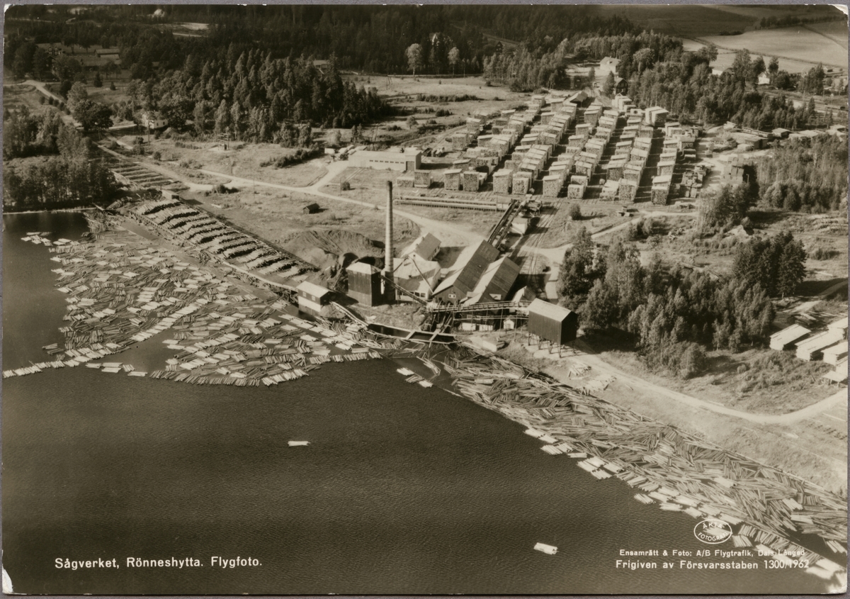 Flygvy över sågverket i Rönneshytta.