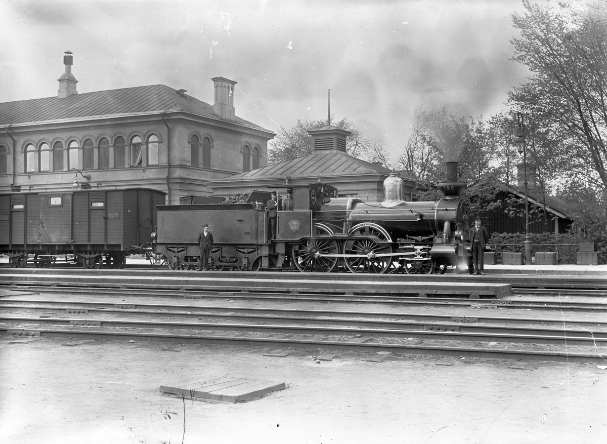 Statens Järnvägar, SJ Ca 198 "Breda". SJ F1 godsvagn. Lokförare Per August Andersson och lokeldare Thoursie