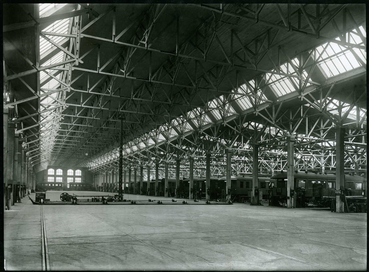 Montagehall, vagnverkstaden med golvtravers.