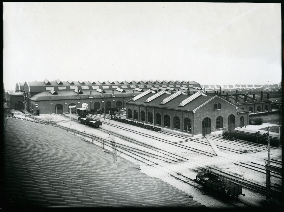 Vy över lokverkstaden med smedjan, fotograferat från huvudförrådet.