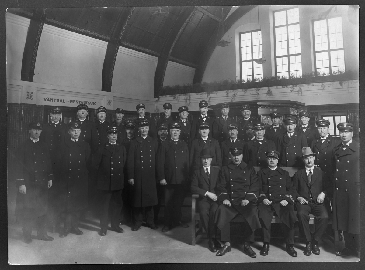 Personal vid Statens Järnvägar, SJ poserar i väntsalen i Sundsvalls Central.
