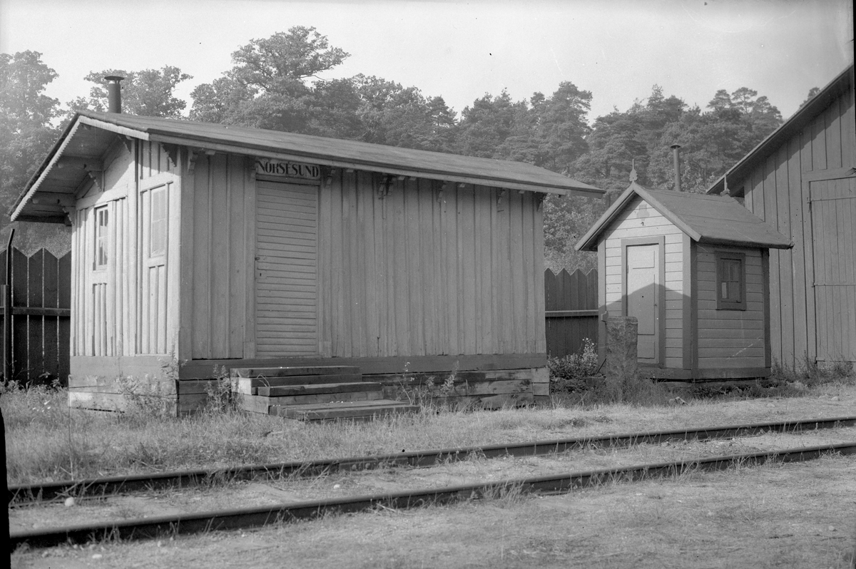 Norsesund stationshus, milstolpe, vaktkur. Bilden är tagen på Järnvägsmuseums område i Tomteboda.