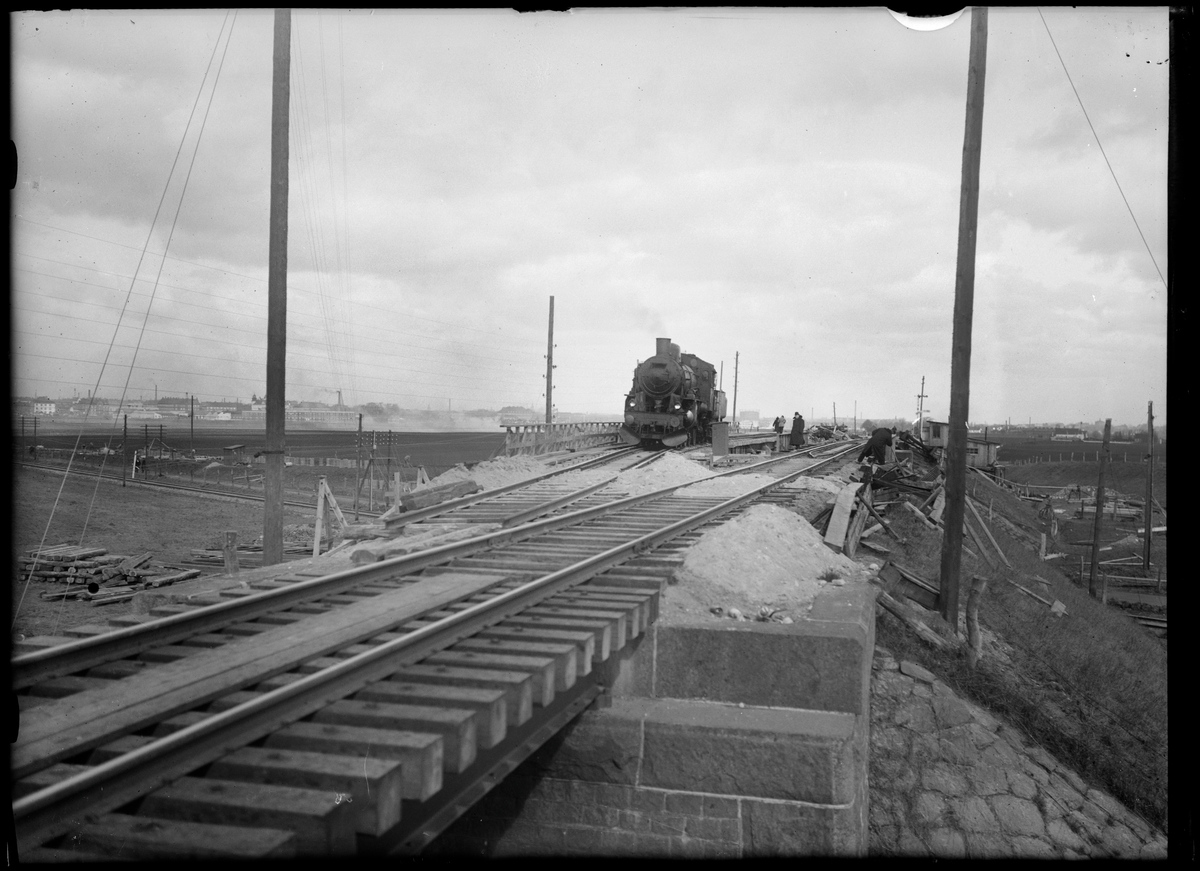 Ombyggnad av viadukten över Malmö Ystads Järnväg, på sträckan mellan Malmö och Trelleborg. Provbelastning av provisorisk viadukt.
